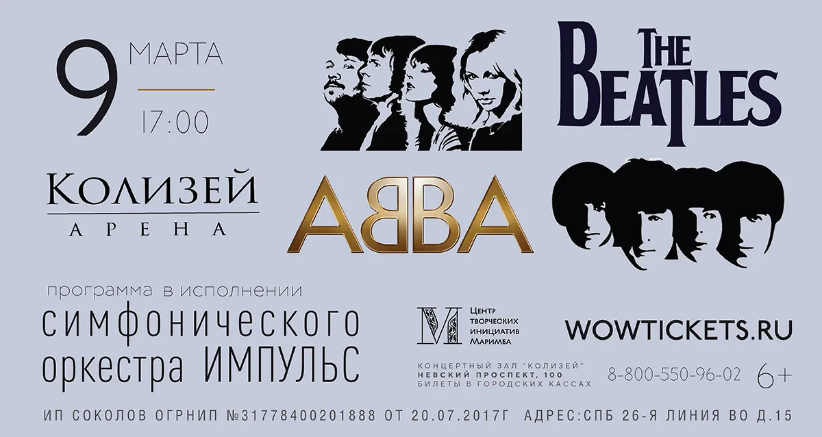 9 марта Легендарные хиты ABBA и The Beatles в исполнении симфонического оркестра. От 630 р. за билет