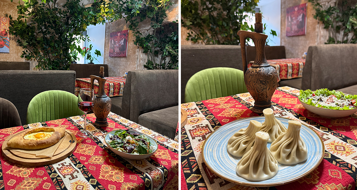 70 р. за хинкали с сыром, 378 р. за харчо по-грузински, 396 р. за долму, 378 р. за «Цезарь», 182 р. за кофе по-восточному
