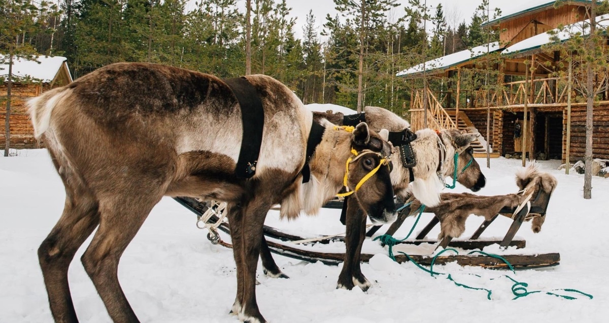 — новогодние забавы и интерактивы: знакомство с хаски, финские сани, оленья ферма, встреча с Талви Укко;