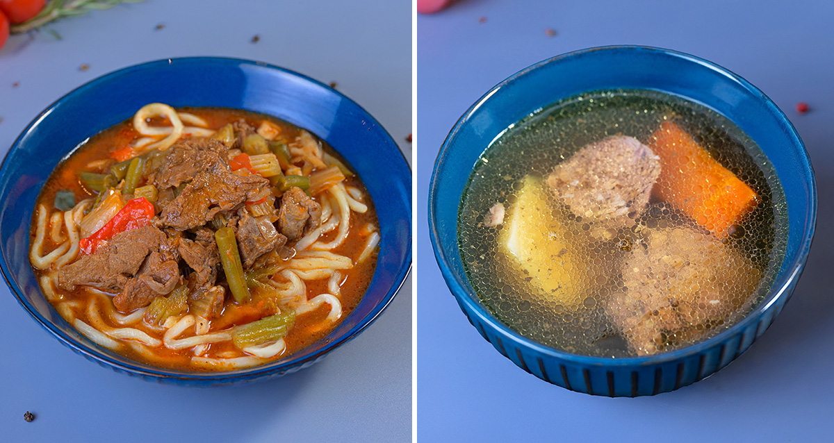266 р. за лагман с говядиной, от 301 р. за шаверму, 279 р. за салат «Цезарь на мангале» или тайский салат