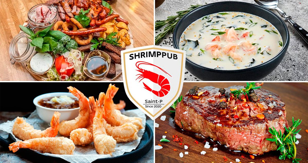 Скидки до 50% на доставку или самовывоз от паба Shrimp