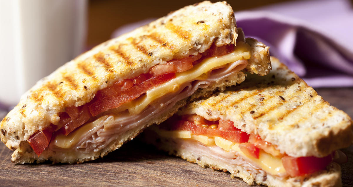 — 105 р. за горячий бутерброд с колбасой, курицей, сыром и зеленью;