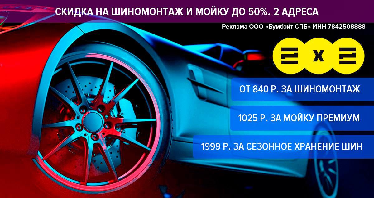 Купон дает право скидки 50% на услуги шиномонтажа и мойки VIP и «Премиум» в сети «Мойка 2х2».